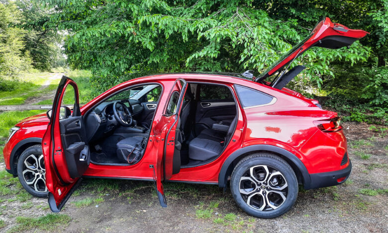 Osnovne crte prednjeg dela su prepoznatljive, da se radi o jednom Renaultu jasno je na prvi pogled. No, gledan iz profila, kao i otpozadi, do izražaja dolaze forme kupea. Linija krova, tj. C stuba, snažno je padajuća, za razliku od „klasičnih“ SUV. Spomenimo i ostale atribute specifične za ovaj nazovi segment, gde pre svega mislim na povišen klirens, velike proreze za točkove uokvirene crnom plastikom, kao i zaštitne lajsne pri dnu vrata. Krajnji rezultat je pozitivan, Arkana dobro izgleda, dizajneri su uspešno spojili sportske i krosover atribute.