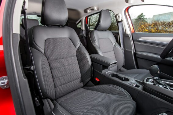 Pređimo sada na prednja sedišta, udobna i lepa na oko. U završnom nivo Intens su u kombinaciji eko koža/platno, s ručnim komandama za podešavanje! Pozicija za upravljačem je prijatno uzdignuta, uz veoma dobru ergonomiju komandi. Sam dizajn komandne table nam je poznat iz Captura, što nikako ne treba uzeti kao manu. Iako tu nema ništa posebno „uzbuđujuće“, deluje skladno, u stilu aktuelnih modela kuće !