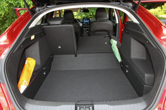 Ubacismo u njega bez većih problema i bicikl od jednog prijatelja, zajedno s njim (dakle tri osobe plus bicikl), koji se nakon dobro zalivenog roštilja nije osećao sposobnim vratiti se kući na dva točka… Predviđena je i polica na dva nivoa, kao i udubljenja sa strane, praktično da se odloži par flaša, kako se ne bi kotrljale po unutrašnjosti. Rezervni točak „ćopavac“ ovoga puta bio je na za to predviđenom mestu, bolje išta nego ništa! Šteta je što pored silne opreme Renault nije predvideo i električnu asistenciju za vrata prtljažnika, velika su i otvaraju se visoko, niže osobe i klinci podižu se na prste da ih dohvate.