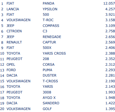Top 20 najprodavanijih modela u Italiji tokom maja 2022. godine: