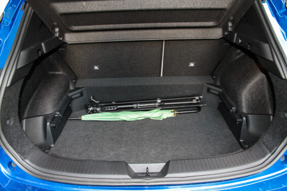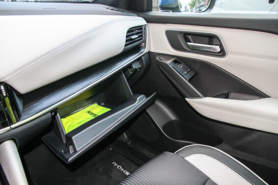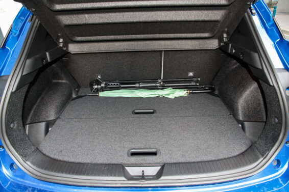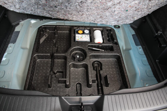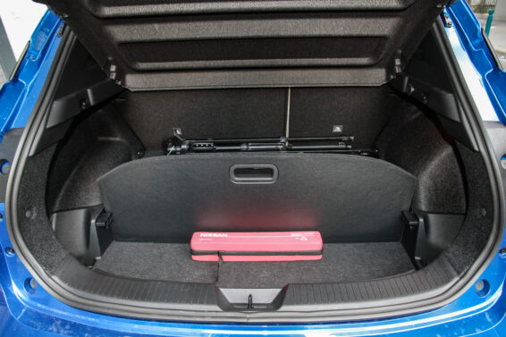 A kad sam već krenuo od pozadi da se osvrnem i na prtljažnik, zapremine 500 l (+74 l u poređenju s bivšim). Podeljen je po horizontali duplom policom, prva, bliža petim vratima, može se postaviti vertikalno, kako bi se sprečilo tumbanje stvari. U samom dnu ne pronađoh rezervni točak već samo kompresor i pribor za opravku guma, no Nissan navodi da je predviđen i rezervni manjih dimenzija.