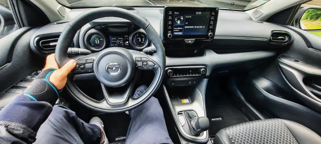 Ova Mazdica deluje dakle nabijeno, s točkovima na samim ćoškovima karoserije, na ovom polju mišljenja su nepodeljena. Nažalost promena stila umanjila je porodične atribute, ni Yaris, pa dakle ni Mazda 2 ne mogu se nadmetati s gore navedenim evropskim zvezdama. Mislim pre svega na unutrašnji prostor, Mazda je prilično skučena, kao da ne igra u istom segmentu.