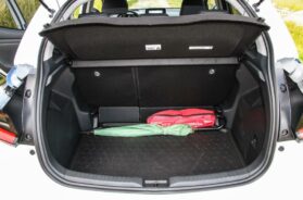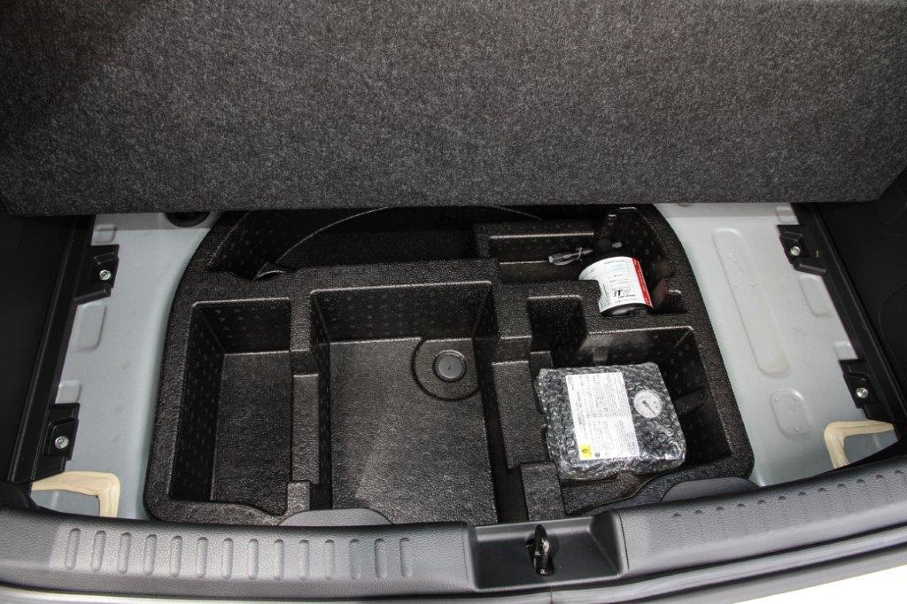 I prtljažni prostor je skroman, s 286 litara, inferiorniji je od onog kod Clija, 208, Poloa…, gde dostiže i 350 lit. Kome treba više može oboriti naslon zadnje klupe podeljen na 2/3, ali kako nije predviđena polica koja deli prtljažnik po horizontali, primetna je razlika u nivoima od desetak santimetara. U dnu pronađoh samo pribor za krpljenje guma, ko se ne oseća sigurno bez rezervnog točka može da računa samo na „ćopavac“.