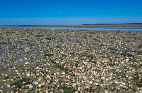 Bez ikave žurbe i stresa stigosmo tako oko podneva do našeg odredišta, već znajući da se mora nećemo nagledati!? Sveznajući Google obavesti nas je da je u to doba oseka, koja će potrajati sve do predveče, što znači da je more otišlo toliko daleko da se pogledom ne može dohvatiti, neophodno je preći par kilometara da bi se okupali. Zapravo navedeno mesto smešteno je u omanjem zalivu, koji se kada dođe oseka potpuno izprazni, ostaje samo središnja „reka“ kojom voda odlazi. Pejzaži podsećaju na Dunav kada je nizak vodostaj, s brojnim i pustim peščanim ostrvima.