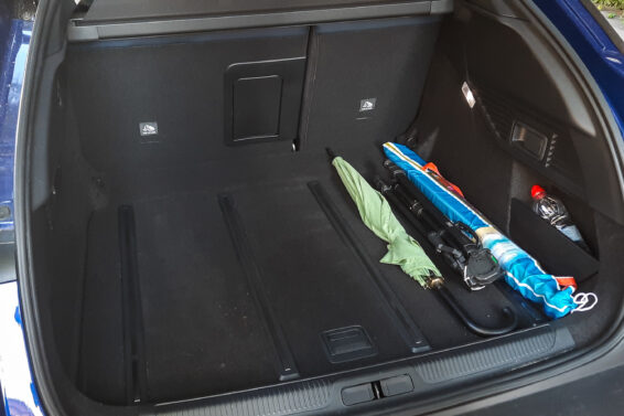 Nema bojazni ni za prtljag, po otvaranju vrata, u našem slučaju ručno (predviđena je i električna asistencija), ukaže se velik otvor pravilnih dimenizija, upravo kao kod jednog karavana. U verzijama pokretanim isključivo benzinskim motorima zapremina iznosi 545 l, nešto manje kod hibridne (485 l), jer je zbog baterije pod viši. Povlačenjem ručica na bokovima obaraju se nasloni, tako dobivena površina potpuno je ravna. Nismo uspeli napuniti ga odlaskom do mora za vikend, za to je trebalo mnogo više prtljaga i morskih „rekvizita“, no deca su odrasla i ne pada ima na pamet da sa nama metuzalemima sednu u isti automobil…