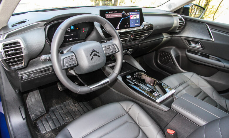 Blago povišena pozicija za upravljačem, tek da se olakša ulazak i izlazak, uz retko udobno sedište s ogromnom amplitudom podešavanja, pravi je melem za leđa vozača, kao i putnika. Podrazumeva se da su i ovde postavljena dopunskim slojem sunđera (Citroen to naziva Advanced comfort), otpornim na deformisanje. U voženom završnom nivou Shine su s mehaničkim komandama za podešavanje, dok su u najvišem električna (Shine Plus), za memorijom za vozača, uz to i ventilirajuća, što je novost kod Citroena. Šteta što i u mom ne behu takva, temperature koje su se u Francuskoj sredinom jula popele i do 40-og podeoka, uprkos snažnoj klimi s dve zone podešavanja, zalepiše mi odeću na „eko kožu“ kojom su obložena. Inače bočni oslonci su slabi, Citroen očito nema sportskih ambicija s ovom limuzinom.