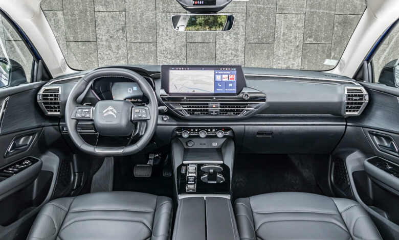 Od centralnog ekrana dimenzija 12 inča (10 za najslabiji završni nivo), s potpuno novim interfejsom, pa do instrument table, pogodili ste, opet s grafikom manjeg C4. Za uzvrat imamo retko bogat, pregledan i velik projektor informacija na vetrobransko staklo od 21 inča (Head-up). Ne očekujte dakle enterijer orginalan kao spoljašnjost, po svemu sudeći moralo se štedeti… Naprotiv, praktični aspekt i raspoloživ prostor su za svaku pohvalu, jednom za upravljačem odmah je jasno da smo u vozilu izdašnih dimenzija.
