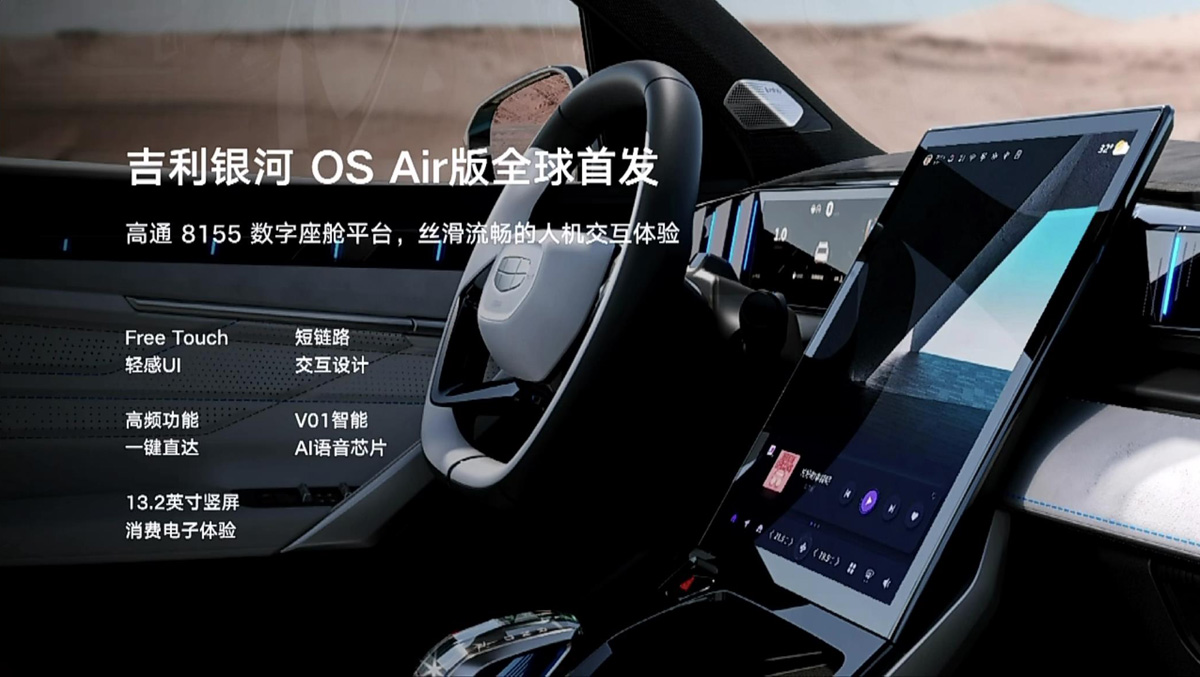Multimedijalni sistem se oslanja na rešenje Geely Galaxy OS Air, dok je hardver (mikroprocesor) došao u vidu proizvoda pod nazivom Qualcomm 8155. Dostupna je i bežična veza generacije 5G, pa i mogućnost osvežavanja softvera „bez kabla“.