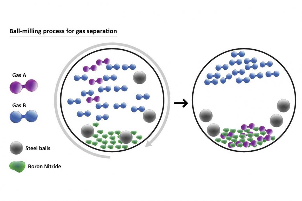 Tačnije, vodonik smešten u neku vrstu centrifuge sa bor nitridom i čeličnim kuglicama će se povezati sa nitridom i stoga poprima oblik praha. Ovo se zatim može ponovo zagrejati čime se oslobađa nepromenjen vodonik koji se može usisati i koristiti.