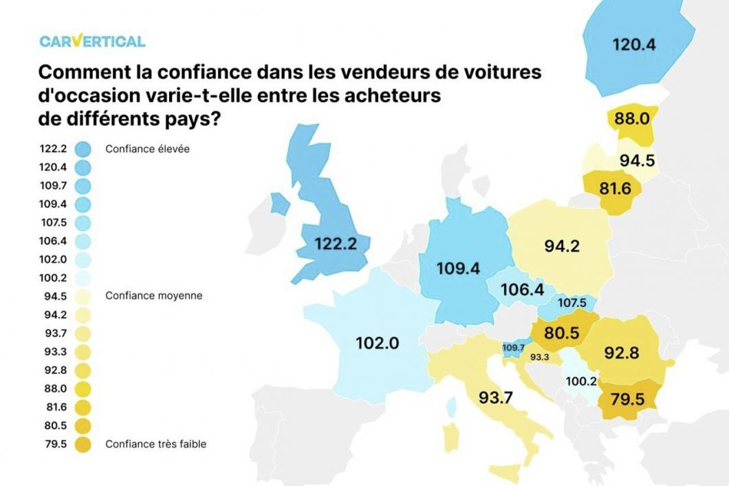 Rezultati, prevedeni u obliku indeksa poverenja, omogućavaju da se razlikuju prilično jasne razlike između zemalja istočne i zapadne Evrope. Nepoverenje prema prodavcima polovnjaka posebno je izraženo u Mađarskoj, Bugarskoj, Litvaniji, Estoniji i Rumuniji.