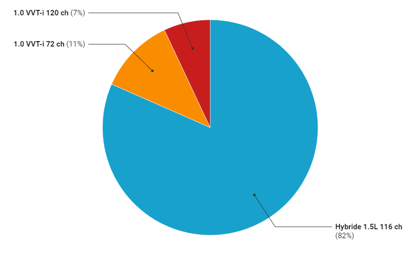 Najfrancuskiji od Japanaca i dalje je jedan od Toyotinih najprodavanijih u Francuskoj. Konkurent Citroenu C3, Peugeotu 208 i Renaultu Clio je takođe jedan od prvih gradskih automobila koji se kladio na hibrid. Francuski l’argus je istražio koje su omiljene verzije među francuskim kupcima.