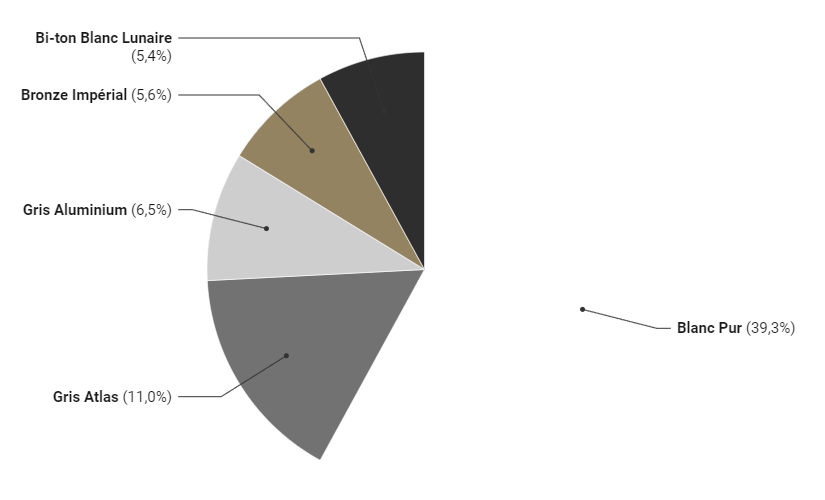Paleta najprodavanijih boja na Toyotinom gradskom automobilu zaista nije najekstravagantna. Vidimo samo da originalna „Imperial Bronze” („Carska bronza“) uspeva da privuče jednog od dvadeset kupaca, ali u ostalim najpopularnijim bojama mesto zauzimaju nijanse sive i bele, što predstavlja skoro polovinu prodaje ako uzmemo u obzir lunarno belu nijansu sa crnim kontrastnim krovom.