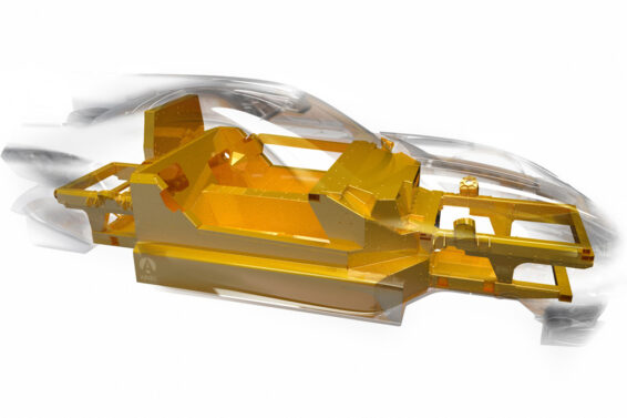Utemeljen je na aluminijumskoj monokok karoseriji na koju je nakačen aluminijumski podokvir, ali je zato karoserija u potpunosti izvedena od plastike ojačane ugljeničnim vlaknima. Vrata koja se otvaraju u stilu krila ptice su u pokretana upotrebom električne energije.