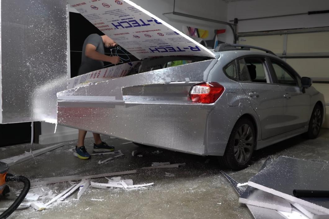 Dakle, Think Flight je krenuo na posao. Sa jednostavnim panelima od krute izolacije od pene, trake, kartona i masti za laktove, napravljen je oklop koji je potom pričvršćen za zadnji deo Impreze da bi produžio zadnji deo i olakšao što je više moguće protok vazduha. Pored veoma vidljivog „konusa” tu su i generatori vrtloga, kao i poklopci na felnama. Treba napomenuti da je u pogledu modifikacija ovog tipa, kalifornijsko zakonodavstvo mnogo popustljivije nego evropska.