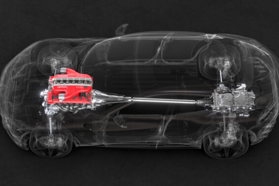 Stoga se pod haubom nalazi motor V12 visoke kanonske vrednosti. Atmosferski je kako i dolikuje jednom Ferrariju. Ramatrala su se i savremenija rešenja za pogonski sklop, uključujući i hibridni, ali njih ćemo videti kasnije. Sada gledamo „Punokrvni“ hiperautomobil s agregatom V12.
