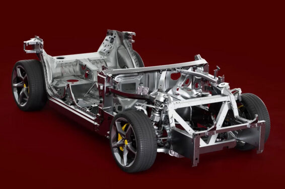 Ovo je isti onaj sistem 4RM koji se pojavio na modelu Ferrari FF pre jedanaest godina: ne postoji tradicionalna menjačka kutija za prenos, ali postoji zaseban dvobrzinski menjač za prednje točkove, montiran na prednjem kraju motora. Umesto diferencijala, postoje dva paketa mokrih spojnica koji menjaju vuču na svakom od prednjih točkova. Ovaj aranžman je omogućio da se postigne istinska raspodela težine superautomobila od 49:51 u korist zadnje osovine.