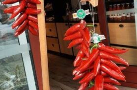 Na jednoj od fotografija možete videti da se najbolja koju smo probali prodaje po ceni od 300 evra po kilogramu, mnogo, iako se šunke suše 3 godine, a dobijaju se od svinja sličnih Mangulicama. Caka je naravno u ishrani i odgoju, vreme provode uglavnom napolju i hrane se isključivo žitaricama i žirom. Spomenuta klima s čestom kišom i sunčanim razdobljima ogovara i tim famoznim crvenim paprikama, posetismo jednu od nebrojenih plantaža gde smo se mogli uveriti da se čitava proizvodnja obavlja ručno (berba, sušenje, mlevenje…).