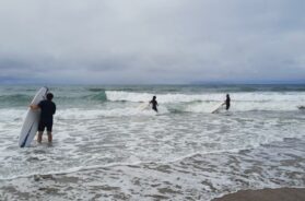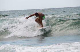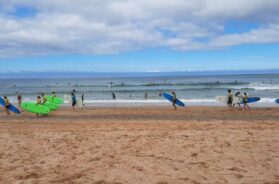 Usput rečeno samo mali deo plaža, u širini od stotinak metara, nadgledan je mladim i zgodnim spasiocima, koje su ćerke mog drugara „šmekale“ s neskrivenim interesovanjem, ostale su u principu zabranjene ili se kupate na ličnu odgovornost. Svojevremeno sam se okušao i u toj veštini zajedno s mojim „klincezama“, no nakon dvočasovne seanse shvatih da surfovanje nije sport za mene.