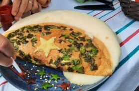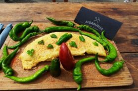 Ja, kao veliki obožavaoc svih paprika, nabrah par komada kako bi se uverio u njihov ukus dok su sveže. Blago su pikantne, da ne kažem ljute, ove godine više nego što bi uzgajivači želeli, navodno jer je u avgustu bilo previše sušnih perioda, kao uostalom i u čitavoj Evropi. Naletesmo i na lokalno takmičenje za najbolji omlet, isključivo od jaja i paprika (crvenih i zelenih), nakon što sam probao nekoliko po dolasku kući uvrstih ovaj omlet u kućni meni.