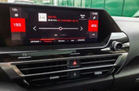 Na sredini centralne konzole smešten je elegantan i veliki ekran od 10 inča, od ranije nam poznat iz brojnih modela grupacije PSA. Malo dalje, dakle ispred suvozača, neupućeni će biti zbunjeni „skalamerijom“ koja služi kao držač za ekran-tablet, smešten u polici ispod (pogledajte slike). Nakon više druženja s C4 shvatih da nema realnu upotrebnu vrednost, te plastični ekran (imitacija) gurnuh ispod sedišta a policu Madame Rajković iskoristi za putne karte, nebrojene račune i ostale sitnice.