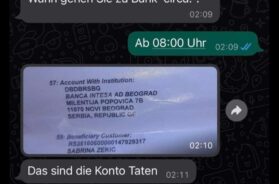 U prilogu su slike automobila (skinute sa sajta Polovni automobili), slike automobila u dvorištu vlasnika i ss portals Autoscout24 te prepiska sa lažnim prodavcem i broj računa koji je poslat prijatelju da se uplati avans.