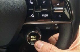 Da se radi o najjeftinijoj verziji vidi se i po odsustvu atraktivng dugmeta na donjoj desnoj strani upravljača, koje je u funkciji izbora programa vožnje (Multisense). Kod voženog postoje samo dva (Normal i Eco), a izbor se vrši na centralnom ekranu. Inače vozač se savršeno oseća za sportskim profilisanim upravljačem, podsečenim na gornjem i donjem delu. Ergonomija komandi je za pohvalu, ne samo navedenih ekrana već i čitave armature, računajući i detalje kao što su pozicija za beskontaktno punjenje/odlaganje smartfona, „na balkonu“.