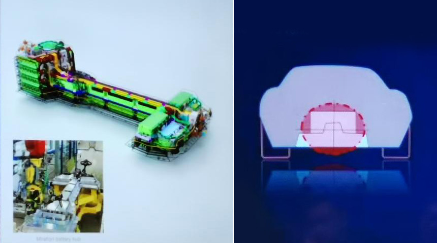 Trakciona baterija poseduje nezgodan, neobičan oblik: blokovi se nalaze unutar visokog centralnog tunela, ispod prednjih sedišta i iza naslona na zadnjoj klupi. Ovo je omogućilo održavanje visine automobila, koncentrisanje mase baterije pravcem uzdužne ose kupea, a takođe i ujednačavanje karoserije benzinskih i električnih verzija što je više moguće. Istina, zapremina prtljažnika je pretrpela posledice konverzije u elektromobil, pa ovde nudi samo 270 litara naspram 310 litara za benzinske kupe.