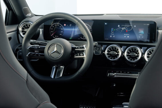 Multimedijalni sistem MBUX je unapređen, nova je grafika, unapređen je sistem glasovnih komandi, dok je dodat i senzor za raspoznavanje otiska prstiju. Svoje mesto je izgubio tradicionalni panel lociran na središnjem tunelu koji se dugo nalazio na svim Mercedesima, i to kao nepotreban.