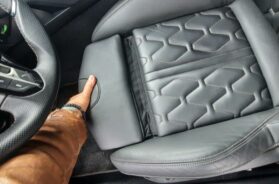 U našem slučaju su od rafinirane kože s atraktivnim štepovima, plus grejana i s masažom. U superlativima je i izbor materijala, uz GT u serijskoj opremi su umeci od plemenitog drveta, uz obilatu upotebu aluminijuma i mekane plastike. Praktični aspekt enterijera je bez zamerki, brojne su pregrade i boksovi ukupne zapremine od ukupno 32 litra. Flaše od 1,5 litra pronalaze mesto u vratima, a mobilni telefon, ispod (pre)masivne centralne konzole, gde je predviđeno mesto za beskontaktno punjenje i USB priključak.