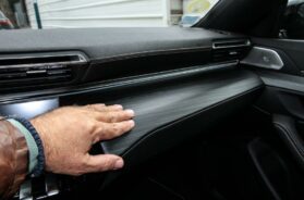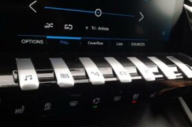 U oči odmah upada i centralni ekran od 10 inca u 8:3 formatu, osetljiv na dodir. Kao i kokpit, blago je zakošen ka vozaču, dok su ispod njega prelepi klavir prekidači od aluminijuma. Atraktivnom dizajnu svoj doprinos daje i ručica automatskog menjača, koja je od novijih modela proizvođača (208, 308, Citroen C4…) zamenjena povećom sklopkom.