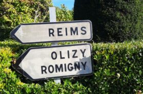 Cilj nam je glavni grad regiona Reims (izgovara se Rans) na oko 150 km, no pre nego li stigosmo, silazimo s autoputa kako bismo uživali u pejzažima, odnosno beskrajnim obroncima pod vinogradima. Mnogi lokalni putevi nose oznaku „Route de Champagne“ (putevi šampanjca), upravo njih treba uzeti ukoliko želite proći kroz same vinograde i eventualno probati tri vrste grožđa od kojih se pravi.