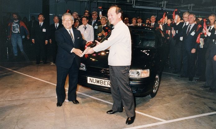 Prva Carina E bila je pravi događaj u Velikoj Britaniji. Soićiro Tojoda, otac Akija Tojode (sadašnjeg predsednika), bio je tamo zajedno sa prvim osobljem od 1.143 radnika. Pokretanje fabrike zahtevalo je ulaganje od 840 miliona funti i preko 100 radnih sati obučavanja osoblja.