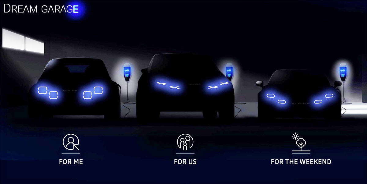 Strategijom Renaulution je predviđena ekspanzija i transformacija marke Alpine. Ako se gama trentno sastoji od različitih benzinskih verzija sportskog modela Alpine A110, onda obećavajuća postava nazvana garažom iz snova (Dream Garage) uključuje tri elektromobila. U pitanju je navijena verzija hečbeka s oznakom Renault 5, kupeoliki krosover, i naposletku sportski automobil koji će zameniti aktuelni A110.