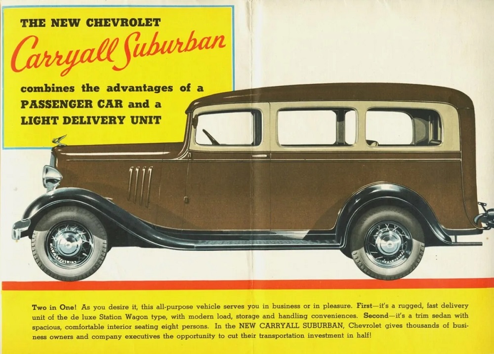 Chevrolet je reklamirao svog velikana uz priču „idealan je za turiste za kampovanje ili vlasnike malih preduzeća koji nisu u stanju da priušte dva vozila“. Zatim je nastalo i ono čuveno „sport“ i „utility“, što je prethodnik današnjih SUV (Sport Utility Vehicle) vozila.