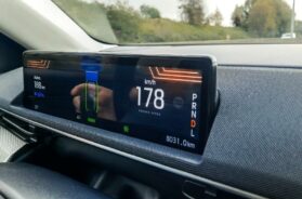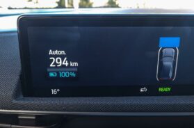 Dobar ekran, krcat informacijama i brz, tim bolje jer sve prolazi preko njega. Posebno mi se dopalo veliko mehaničko dugme za jačinu zvuka, pri dnu, bukvalno ubodeno u njega. Naprotiv, ispred vozača je jedan omanji neugledan ekran, s tek nekoliko najvažnijih informacija, kao što su brzina kretanja, stanje baterije i autonomija. Dizajn komandne table je posve klasičan, izdvaja se jedino integrisanim zvučnicima ispred suvozača, izvrsnog kvaliteta.