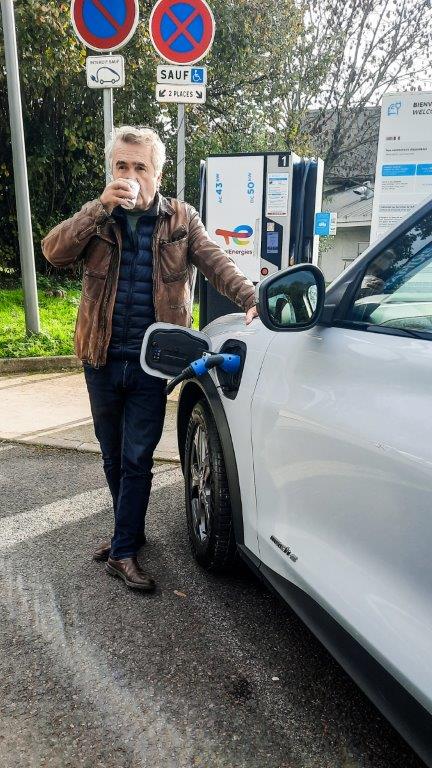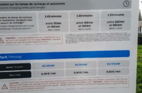 Oterasmo ih nekako ali ne lezi vraže, oba brza punjača su u kvaru, jedino jedan „polu-brzi“ od 43 kWh radi. Šta je tu je, k’o velim da popijemo kafu i odemo do toaleta, valjda će se baterija malo dopuniti za 15-20 minuta… I jeste, za 3 %, trebali smo ostati više sati da bi je napunili do vrha. OK, idemo dalje, sutradan odoh do velike Totalove pumpe na kružnom toku oko Pariza (naziva se „Periferique), opet ista priča, brzi u kvaru s jedne strane, napravih krug s druge, gde je još jedna stanica, ali ni tamo ne funkcionišu, izuzmemo li taj polu-brzi.