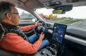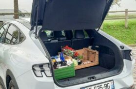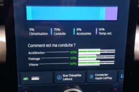 Po povratku s prvog dana test vožnje stadosmo na jednu veliku benzinsku pumpu na auto putu A1, koji povezuje Francusku s Belgijom, reče nam Mustang (na ekranu se mogu pronaći sve stanice u blizini) da na njoj ima 2 snažna punjaca od 175 kW. Kad tamo haos, produžen vikend od tri dana (petak, 11. novembar je u Francuskoj „Amistice“, dan kada se obeležava završetak Prvog svetskog rata) i lepo vreme izmamili su silne domaće i strane turiste, nigde mesta za parkiranje, stali ljudi čak i na mesto za punjenje električnih vozila.