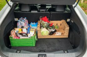Po ugledu na prednja sedišta i klupa je veoma udobna, podrazumeva se s deljivim naslonima. Prtljažnik je dovoljno prostran i pre svega pristupačan, zahvaljujući velikim petim vrataima. Ford navodi zapreminu od 402 litra do mekanog pokrivača, odnosno 519 litara ukoliko se ovaj ukloni, na šta treba dodati još 80 litara ispod prednje haube. Kako je elektromotor na zadnjoj osovini ovde je povelika „rupa“, zgodna za odložiti dva kabla za punjenje.
