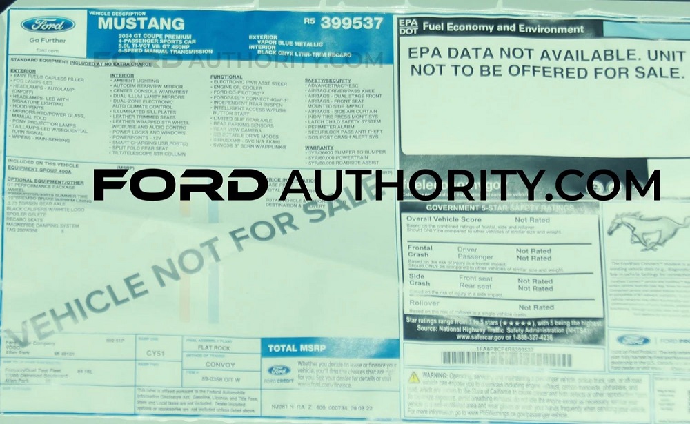 Kolege sa sajta Ford Authority su došle do nekih „tajnih“ dokumenata koja pokazuju nalepnicu na prozorskom staklu, takozvani „window sticker“. Reč je o papiru nalepljenom na svim novim četvorotočkašima, i preko njega možemo da saznamo sve detalje, kao što su oni na temu mehanike, opreme, porekla i slično.