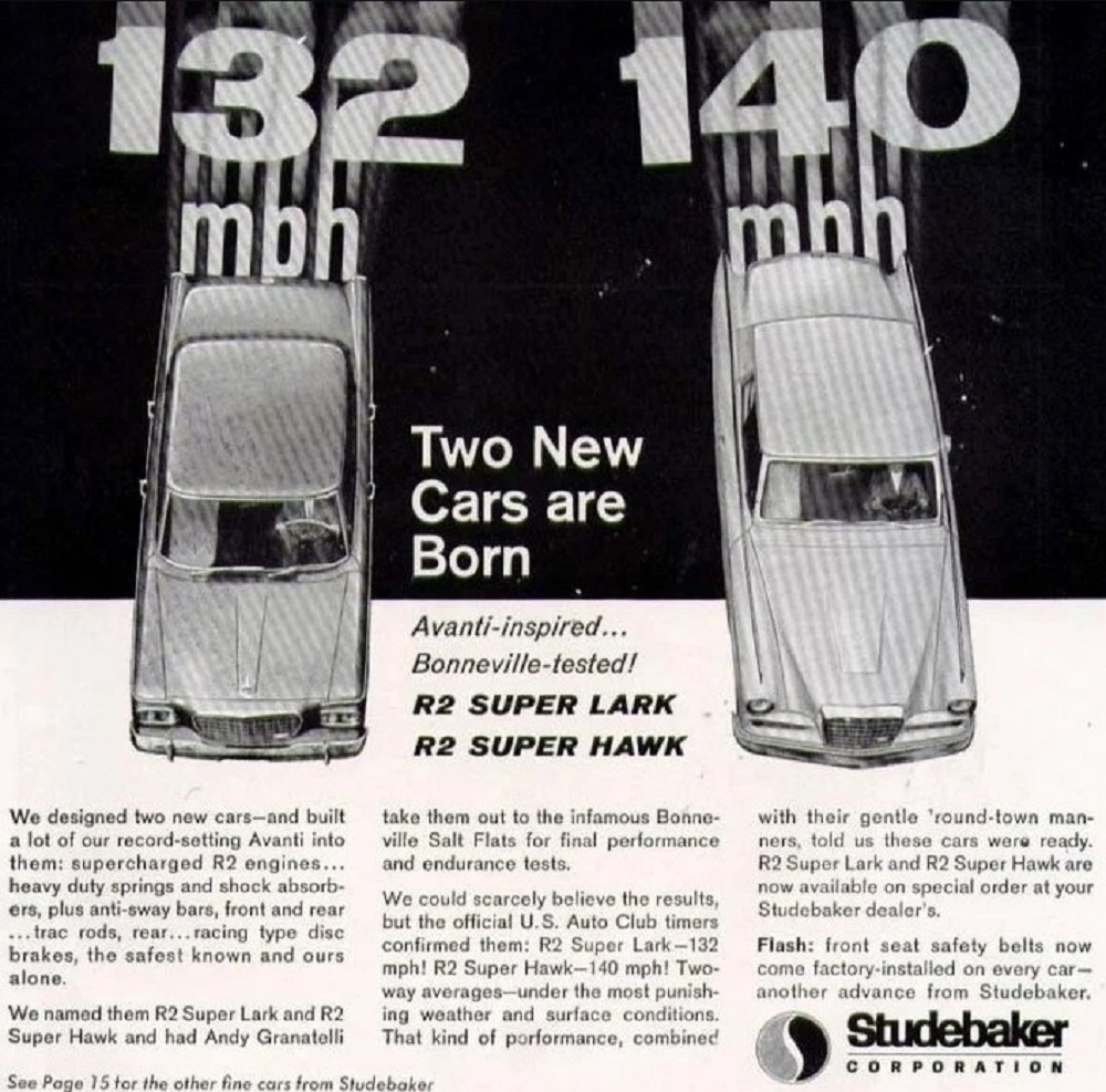 Tokom testiranja na legendanoj stazi Bonneville Salt Flats u američkoj saveznoj državi Juti, inženjeri su primetili da bi motor sa kompresorom lagano mogao biti smešten i ispod haube Larka. Učinilo se da bi takav potez doneo veliku medijsku pažnju zastarelom kompaktu, pa je brzo požuren u serijsku proizvodnju. Dobio je ime Super Lark i bio u stanju da dostigne maksimalnu brzinu od 212 km/h, što ga je zapravo učinilo daleko bržim nego kasnije legende poput GTO-a ili Chargera koje smo već spomenuli.