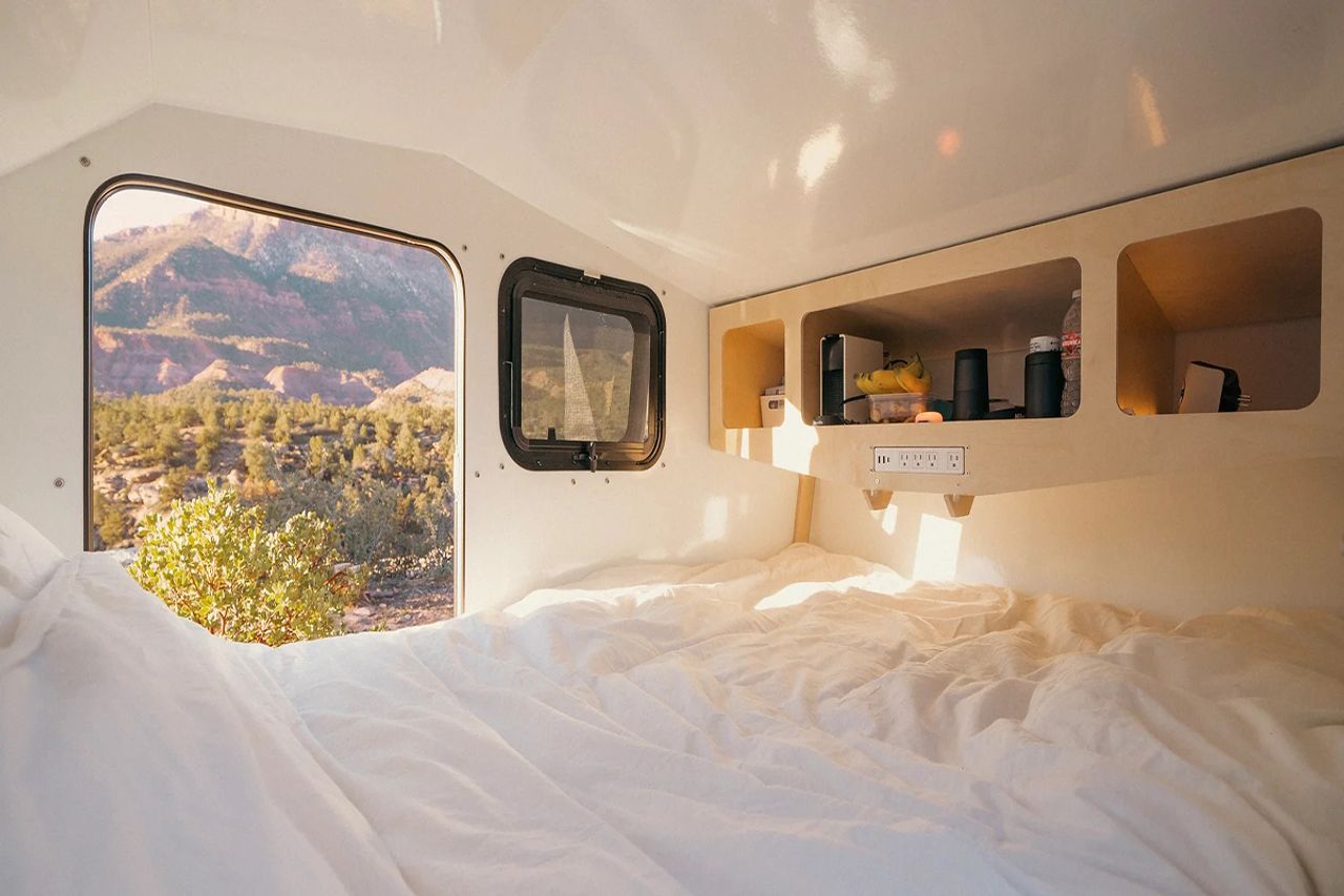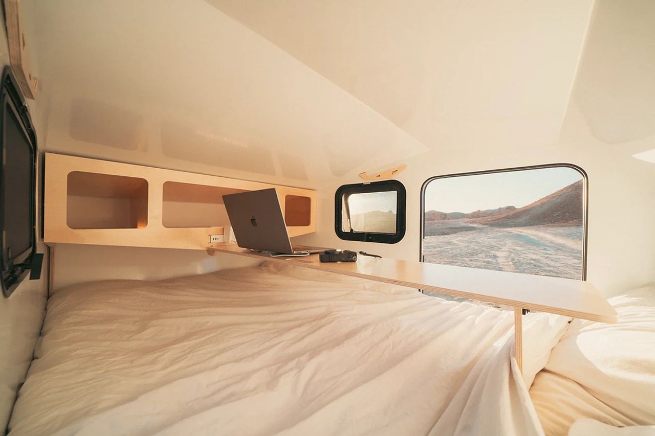 Sa malom visinom, prikolica je zamišljena u cevastoj konstrukciji od nerđajućeg aluminijuma sa panelima od istog materijala, ali je podvrgnuta posebnom tretmanu da odbija sunčeve zrake, kao i da ima unutrašnju izolaciju koja omogućava održavanje prijatne temperature unutra. Mala kabina ima veliki krevet koji je pogodan za dve osobe, širok 1.371 milimetar i dugačak 2.032 milimetara, sa visinom od 965 milimetara.