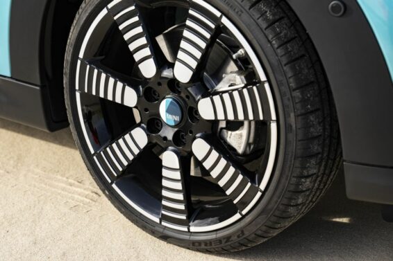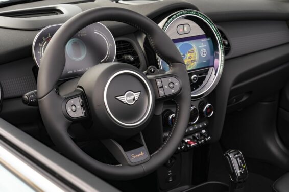Specijalni Mini Cabrio upotpunjuje spoljašnju sliku sa 18-inčnim felnama od lake legure u dizajnu sa pet krakova sa veoma atraktivnim žlebovima. Unutrašnjost, prednja sedišta su obložena crnom kožom i, kao i obruč volana, presvučena je kožom sa dvostrukim belim šavovima. Diskretno, krajnje desno na kontrolnoj tabli nalazi se specifičan vez koji se odnosi na ovo specijalno izdanje.