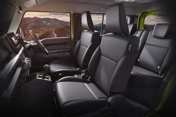 Kako trovratni Jimny prima četiri putnika, isto tako je i s verzijom s petoro vrata. Zadnji red više nije uglavljen između oboda lukova točkova, ali kako rekosmo, ostaje podesan samo za dve osobe. Zapremina prtljažnika je sada 208 litara, a bila je nominalnih 85 litara. Nivo komfora je nešto veći usled mogućnosti deobe zadnje klupe.
