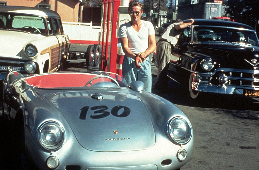 Na slici Dzemsa Dina u pozadini desno stoji crni Kadilak – meni je on mnogo interesantniji nego ovo parce aluminijumskog pleha zvanog Porse! 🙂