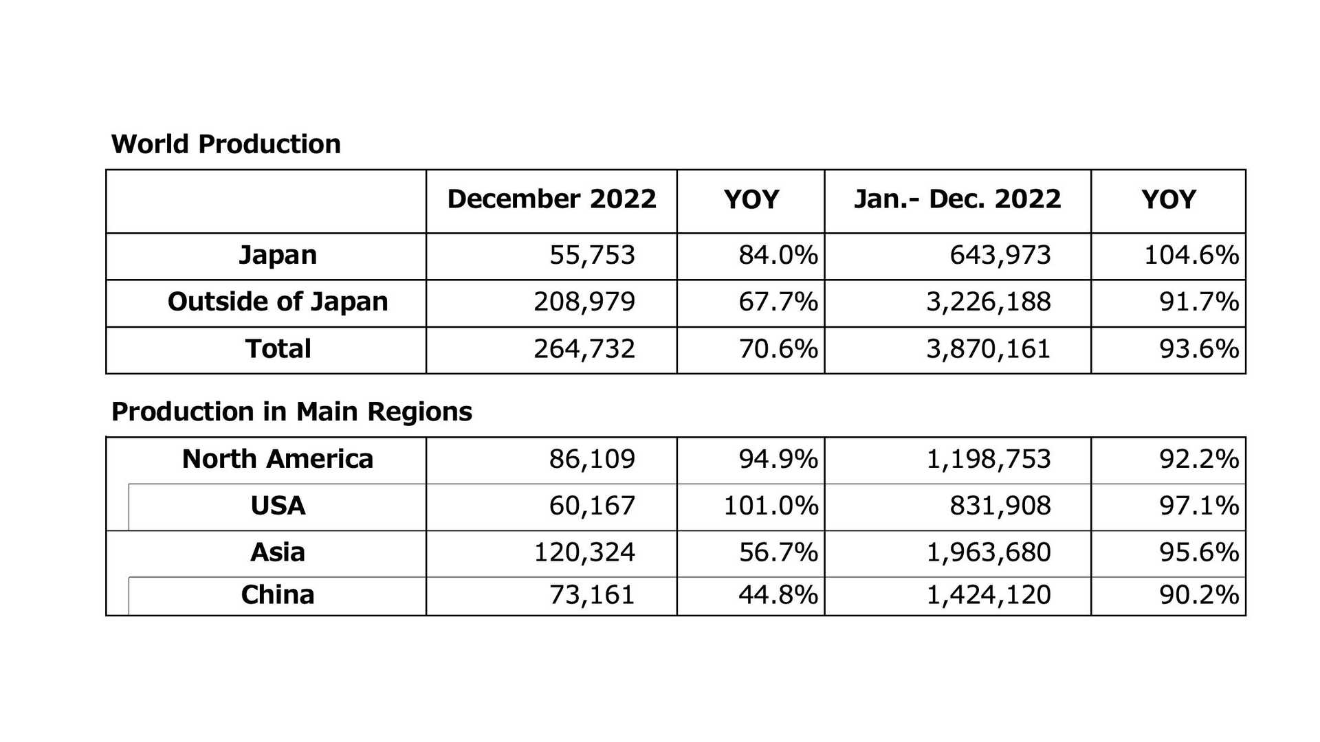 Poslednji u nizu proizvođača automobila koji je izašao u javnost s prodajnim brojkama za 2022. godinu je japanska Honda. Zahvaljujući objavi službe za odnose s javnošću ove firme, saznajemo da je obim proizvodnje bio na nivou od 3.870.161 vozila, što je lošiji rezultat od ostvarenog tokom 2021. za 6,4%. Nažalost, ovo je već četvrta uzastopna godina u kojoj proizvodni potencijal Honde gubi na zamahu.