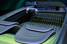 U kabini se nalaze dva sedišta, fotolje u čiji pod su integrisani jastuci, dok nasloni imaju moć transformacije. I naravno, ekrani su razasuti posvuda, čak ih ima i u glavčini točka.