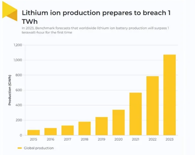Sve u svemu, Benchmark Minerals Intelligence predviđa da će globalna proizvodnja litijum-jonskih baterija premašiti 1 TWh po prvi put ove godine, što je povećanje od više od 500 procenata od 2018. godine, kada je proizvodnja dostigla 181 GWh.