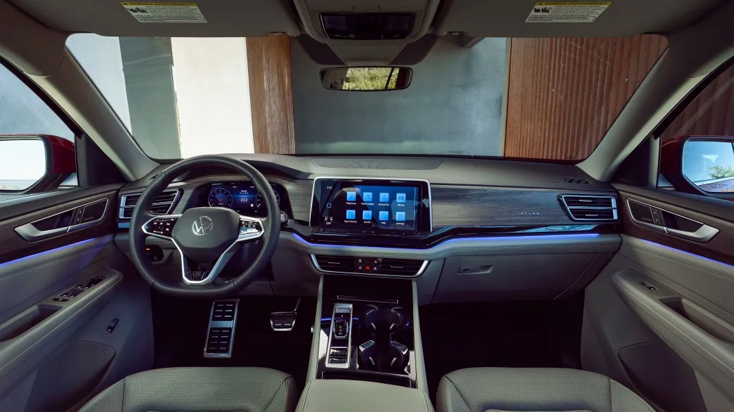 Jednako malo dramatičan je i enterijer. Tu sada možemo da pronađemo 12-inčni monitor i više standardne i opcione opreme, a pomalo je misterija zašto se Nemci nisu više potrudili da ga unaprede. Naime, jedna od glavnih kritika na račun konstruktora Atlasa i zašto je „lider“ liste vozila koje vlasnici ne bi ponovo kupili, leži u tome što je njegov enterijer previše „amerikanizovan“, pa je javnost dočekala da vidi jeftiniju plastiku umesto čuvene nemačke završne izrade. Izgleda da ćemo morati da sačekamo narednu generaciju krosovera da se to desi.