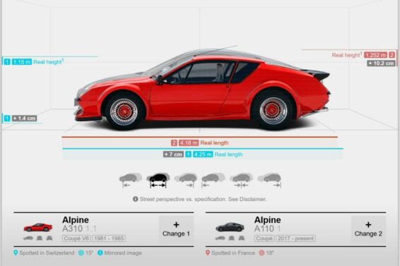 Upoređivač omogućava da se vozila pozicioniraju u profilu sa različitim trasama (centrirano, poređano spreda, poređano od pozadi, …), ali i da se vide jedno pored drugog napred ili pozadi. Razlika u dužini ili širini je stoga jasno vidljiva.