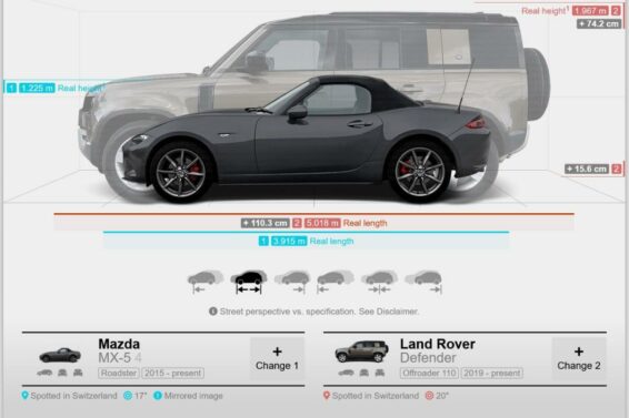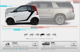 Vebsajt Carsized omogućava da se postave dva automobila po izboru da bi se vizuelizovala razlika u veličini koju predstavljaju.